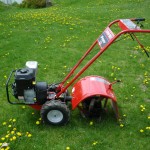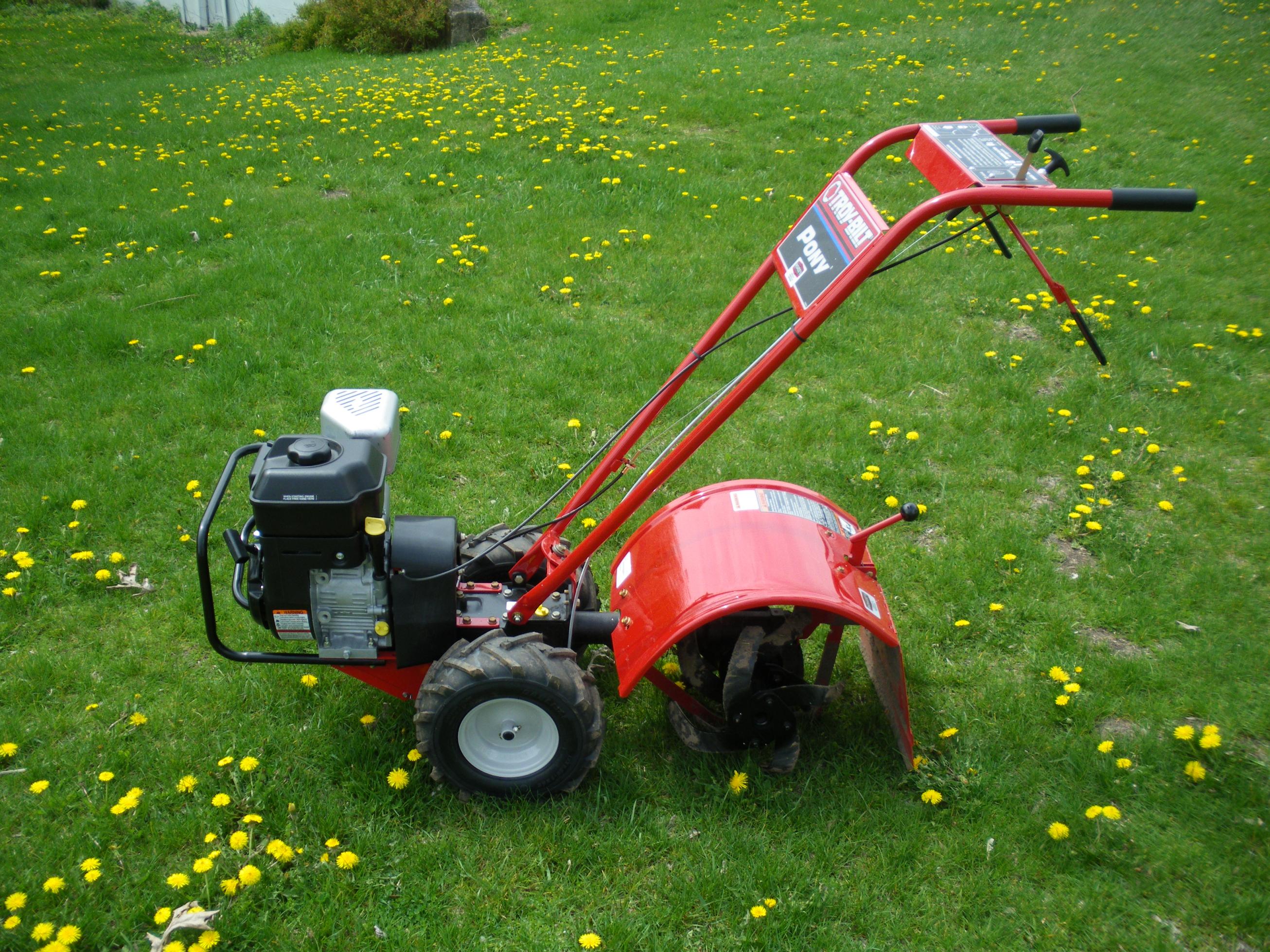 This past week we purchased a brand-spanking-new rototiller! Our old one still works, but it is a front-tine tiller which is harder on the user’s shoulders because it tends to bounce around. Our new one however is a Troy-Bilt Pony, which is a rear-tine, forward rotating tiller. We chose the forward-rotating tines because it prepares the soil better and more evenly. It is also a bit larger than the old one, and is self-propelled, which will help to speed up cultivation.