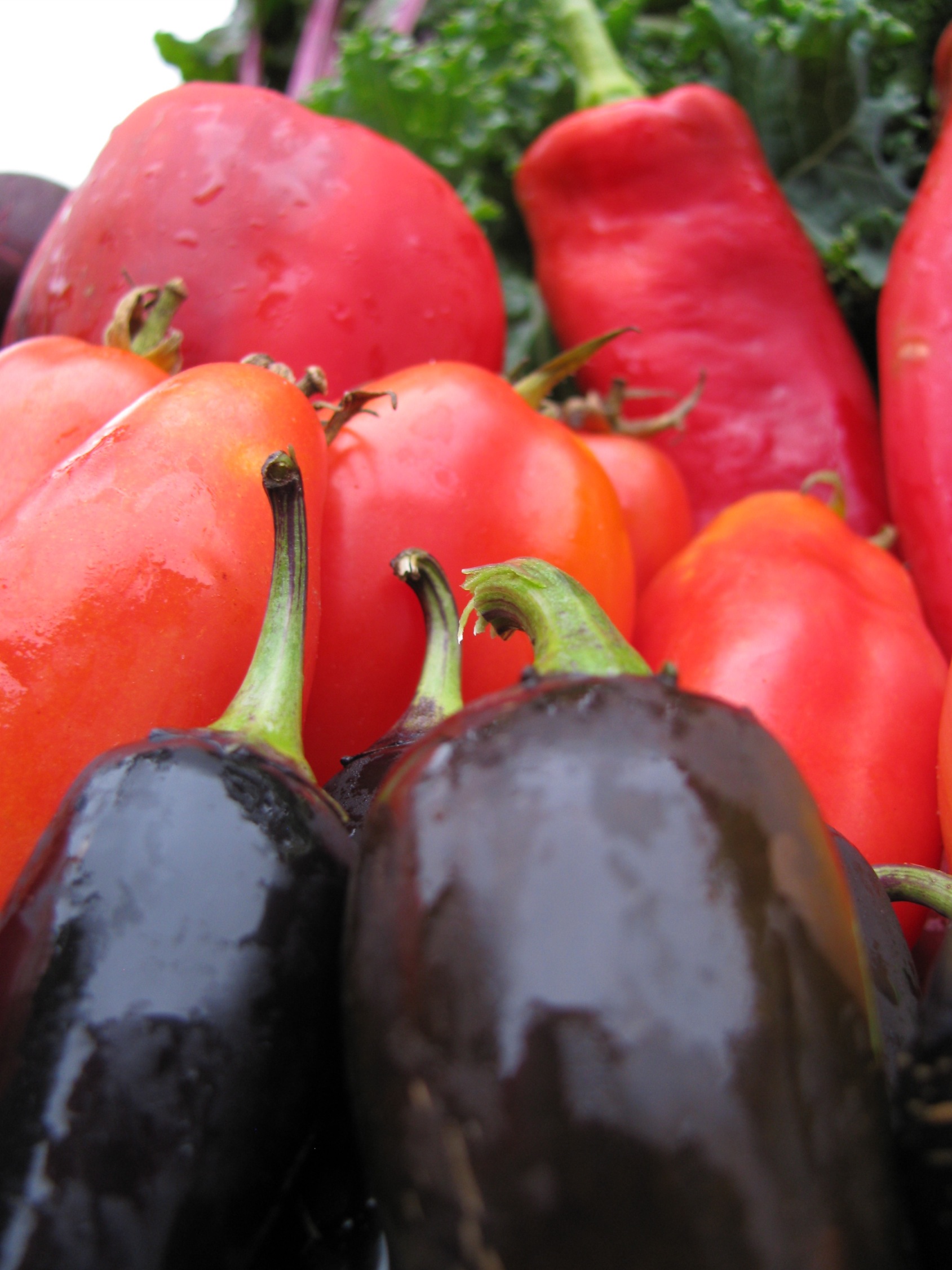 Because of all of his hard work, we are able to have peppers and green tomatoes in your box this week. We don’t have enough of one variety to give everyone the same type of pepper, so you will be receiving a mystery pepper. I did say last week that I thought that last week was the last week of peppers, but this week is definitely the last week of peppers. Almost every night after Wednesday night is projected to be at or below 32ºF and that is just too many nights to try to fend off the frost. Tyler needs to sleep at some point!