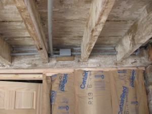 I plugged all of the holes with spray insulation yesterday and once it had time to set up we finished insulating the walls with fiberglass insulation. The next job is putting the insulation up on the ceiling. There were a couple of places where the rafters didn’t bridge the gaps so we had to scab on new boards to have something to attach the insulation and the paneling to once we put it up. There are a lot of putzy jobs that have to be done before we can get the insulation up and is a little frustrating. You finish one job and find out you have two more things to do before you can start on the next step.