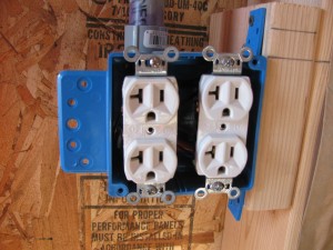We finished running the wires through the conduit early this week. We decided to run the wires through conduit since we didn’t want any critters chewing on the wires, after all it is in a barn. Tyler taught me how to wire the outlets and I got those installed yesterday morning. The photo below is of my first installation of a double outlet!