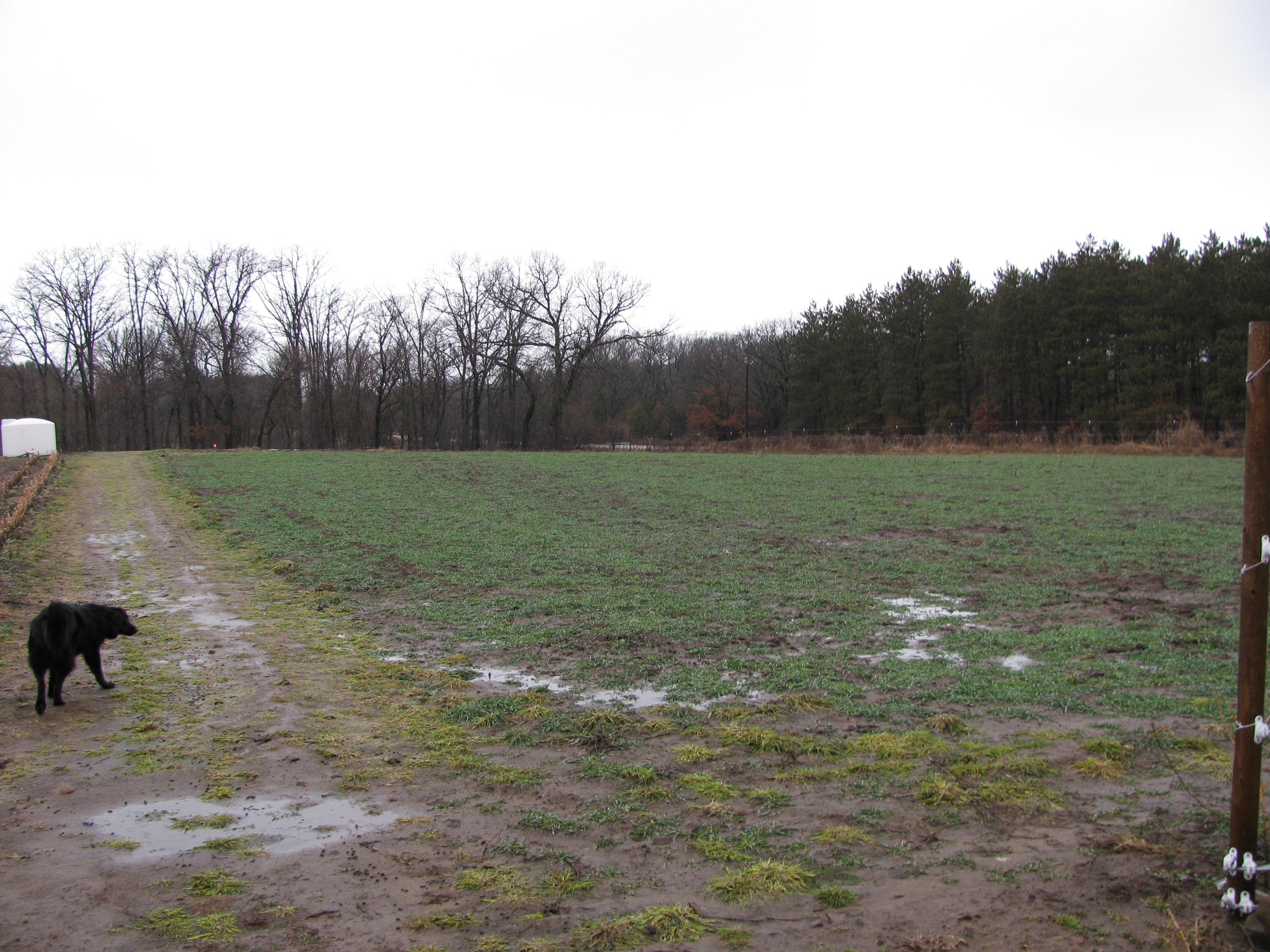 Last year’s fall planting of our cover crop worked really well. When the snow melted earlier in the week it revealed a nice field of green rye.