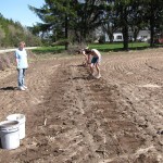 Well, we had our first member-visitors to the farm this past weekend! Emma and Colleen came up and we planted raspberries and rhubarb, we cut up the seed potatoes… and Kate even got them to pull a little garlic mustard! It was a good time, we enjoyed having them come out and help. We invite anyone of our members to come out and see what we’re doing and how well things are growing.