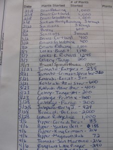 Once the benches are dry we can move all of the onions, scallions, and leeks out of the heated hoophouse and into the new section. Then we can move all of the tomatoes and jalapenos that were planted last week into the heated hoophouse. Hopefully this will make enough room for everything that we are planting this week. So far today I planted San Marzano tomatoes, habenero peppers, ancho poblano peppers, two types of bell peppers, and two types of kohlrabi. That equals more than twenty trays. I am no where near done for the week, but I still think I am a seeding machine.