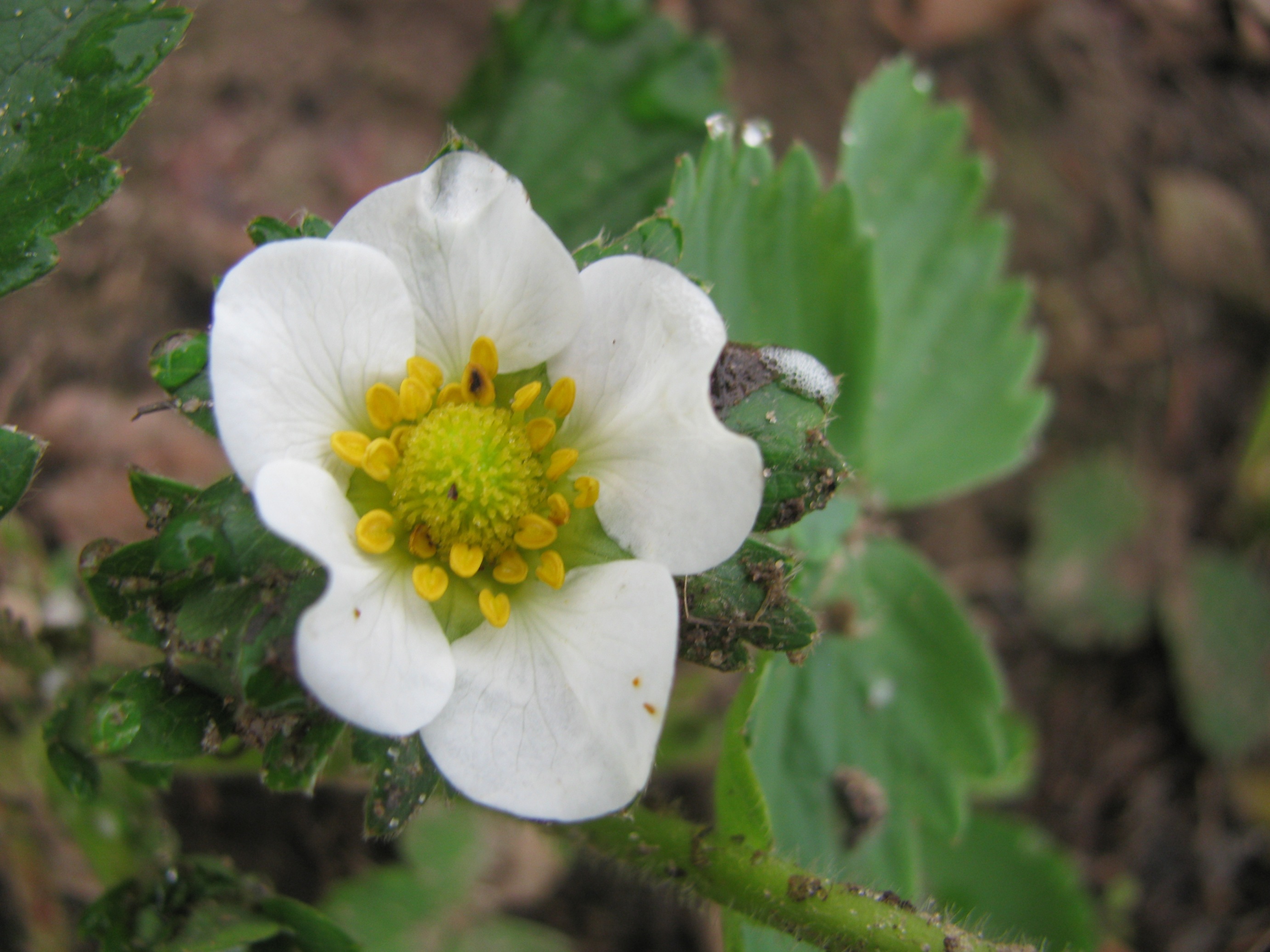 The strawberries are starting to flower and so far almost all of the flowers are healthy. We were a little worried because of the frost we had a couple of weeks ago. Some of the buds were up when the frost hit, and we didn’t know if they would be killed.
