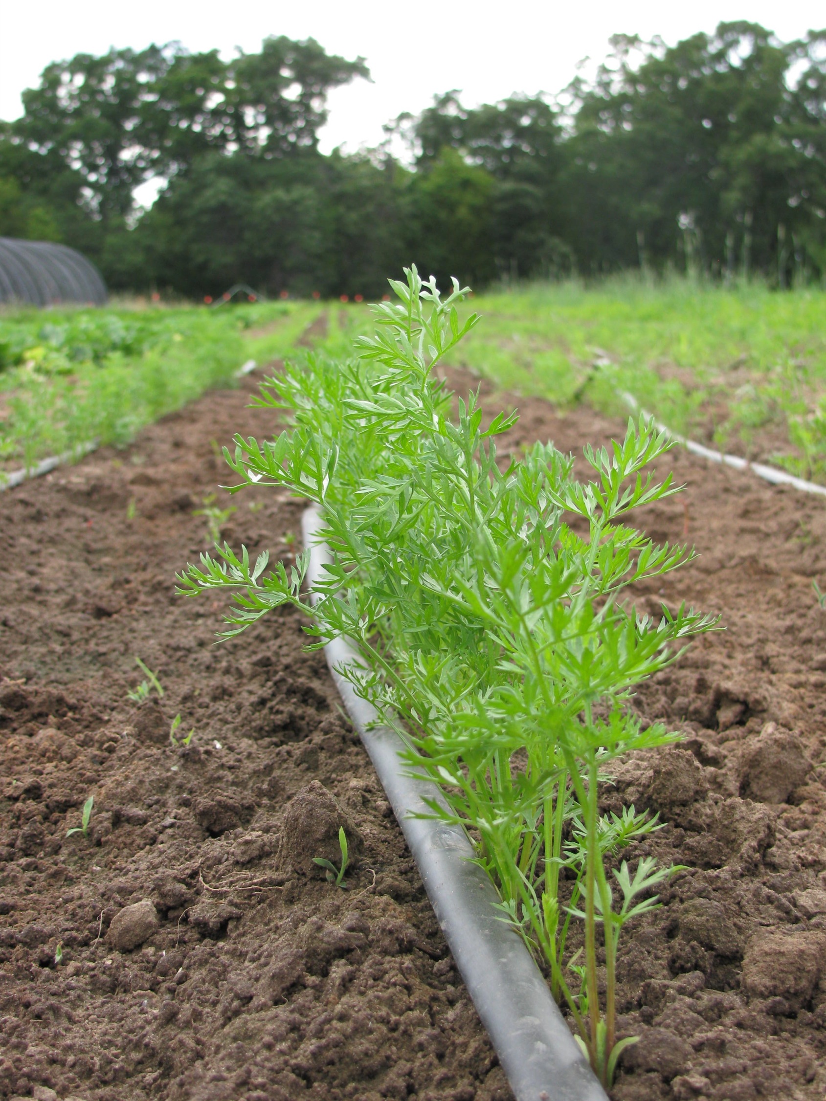 We would like to give a big thank you to my sister and her husband for coming down and helping us out on Saturday. Thanks to all of their help we were able to weed the celery and some of the romaine lettuce. We also weeded 3/4 of the carrots and sucked Colorado Potato Beetle larvae off of half of the potato field with our gas powered blower/vacs. It was a busy day. If you are ever interested in being a farmer for a day, please let us know! We are always looking for help!