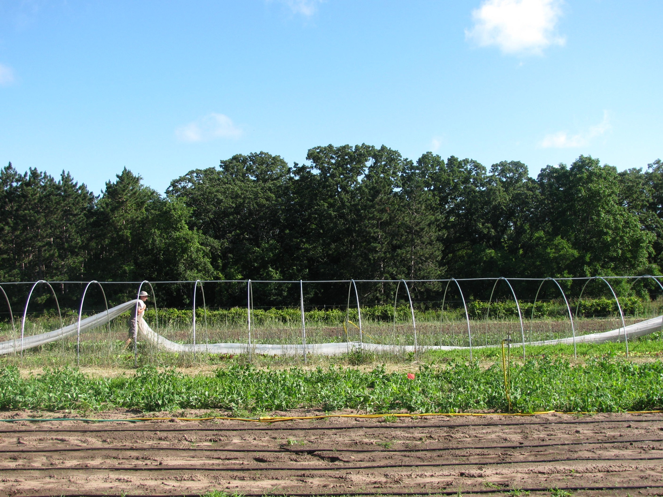 Tyler and our workers are currently out in the field working on the high tunnel. We are taking off the poly that we used to keep the tunnel warm during the spring and replacing it with shade cloth. The shade cloth will keep the lettuce cooler and shaded to prevent bolting. This way we will be able to have lettuce during the end of July and August when the weather is normally to hot for a cool season crop like lettuce.