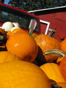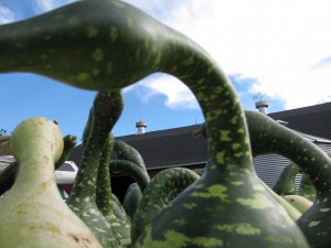 We spent Monday harvesting pie pumpkins, jack o‘lantern pumpkins and gourds. We pulled them from the field because they can get damaged by frosts. We have them piled underneath the pine trees on the eastern side of the field. We can cover them with a tarp to trap the heat at night close to the ground.